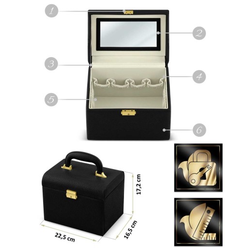 ORGANIZER NA KOSMETYKI PORĘCZNA KOSMETYCZKA KUFEREK Z LUSTERKIEM CZARNY