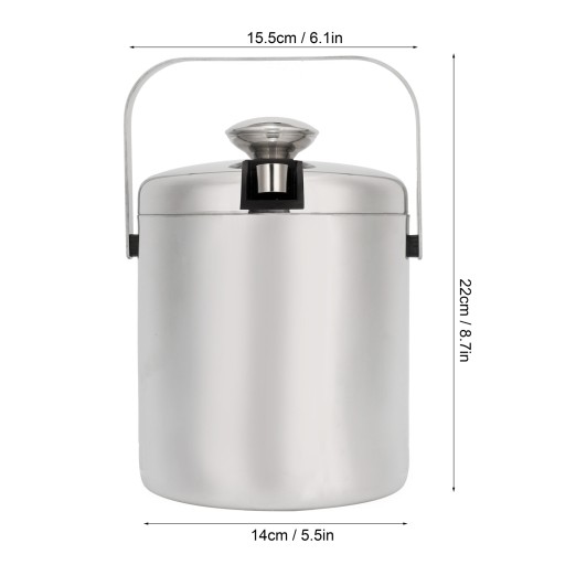 Unikalne i wyjątkowo eleganckie wiaderko do loduz pokrywką i szczypcami. Komplet wykonany z wysokiej jakości stali nierdzewnej. Produkt wyposażony w wygodny uchwyt, który zapewnia pewny chwyt w trakcie przenoszenia orazszczelną pokrywkę. Szczypce w komplecieułatwią serwowanie kostek lodu do drinków lub napojów. Wiaderko z funkcją termoizolacyjnązapewni kostkom lodu perfekcyjny kształt przez dłuższy czas. Wiaderko na lód to doskonałe uzupełnienie zastawy stołowej. Całość zapakowana w ładne pudełko.