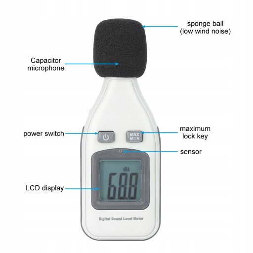 4. Wysoka czułość, nie ma fałszywego alarmu, zakres pomiarowy wynosi od 30-130dBA, zapewni ci najdokładniejsze dane.