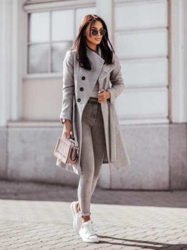 - Damski wełniany płaszcz w jednolitym kolorze na wiosnę i jesień