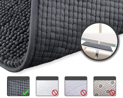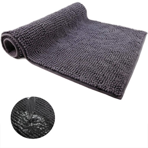 🛁🛁🛁 SZENILOWA MATA ŁAZIENKOWA, ANTYPOŚLIZGOWA, ZMYWALNA, MIĘKKI DYWANIK ŁAZIENKOWY, CHŁONNY DYWANIK ŁAZIENKOWY POD PRYSZNIC - 40 X 60 CM, KOLOR CIEMNOSZARY.