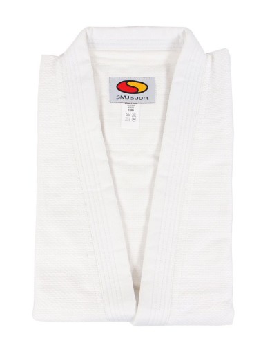 Klasyczne kimono do judo dla osób początkujących o gramaturze 350 g/m2 w kolorze białym. Idealne do treningu zarówno dla kobiet jak i mężczyzn. Bluza z wzmocnionym kołnierzykiem, spodnie na gumce z dodatkowym sznurkiem do wiązania.