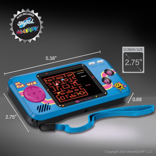 Wielokolorowy, 2.75-calowy ekran przenosi każdy piksel akcji w pełnym blasku. Dzięki doskonałej jakości wyświetlania, Ms.PAC-MAN™ i jej przyjaciele odżywają na twoich oczach, przywracając ducha lat 80. w nowoczesnym stylu.