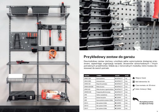 Złożoność systemu powoduje, że możemy go zastosować jako system regałów, wieszaków, koszy w garderobie, pomieszczeniu gospodarczym, pralni czy biurze. Jak i również system półek uchwytów, pojemników, haków, haczyków w garażu, piwnicy czy warsztacie. Dzięki olbrzymiej ilości akcesoriów sam skomponujesz swój zestaw.