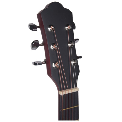 Instrument wykonany został z gatunków drewna charakteryzujących się dobrymi właściwościami akustycznymi, dzięki czemu brzmienie gitary jest bardzo przyjemne. ✅ Wygodny gryf oraz stosunkowo niska akcja metalowych strun pozwalają dość lekko i naturalnie układać palce na progach, nie męcząc przy tym ręki. Na uwagę zasługuje również sam wygląd gitary, która posiada ciemne, matowe wykończenie oraz klasyczne mechanizmy motylkowe.