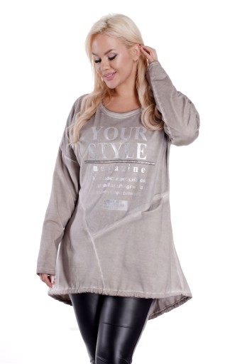 JEDYNA TAKA LUŹNA TUNIKA ASYMETRIA CUDNY BEŻ DLA PUSZYSTYCH do5XL 666C