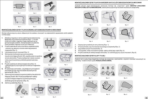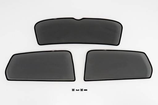 - Komplet 3 sztuk zasłonek magnetycznych (dwie na tylne boczne szyby i jedna na szybę klapy tylnej) + dodatkowe elementy montażowe