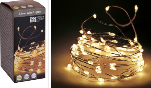 Lampki LED 120 na prąd to sznur 120 punktów świetlnych, służących do świątecznych iluminacji. Lampki mogą być tradycyjnie zawieszone na choince, ale nie zawsze jest to najbardziej oryginalne rozwiązanie. Na sali restauracyjnej sznur lampek można wykorzystać również jako wypełnienie wazonu i lampionu. Dodatkowo w środku szklanego pojemnika można umieścić także bombki, szyszki lub gałązki świerkowe. Długość sznura z punktami świetlnymi około 12 metrów