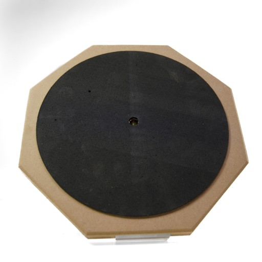 Pad został wykonany z MDFu, a powierzchnia uderzeniowa z twardej gumy imitującej odbicie naciągu. Pad ćwiczeniowy od spodu posiada zamocowany gwint 8 mm.