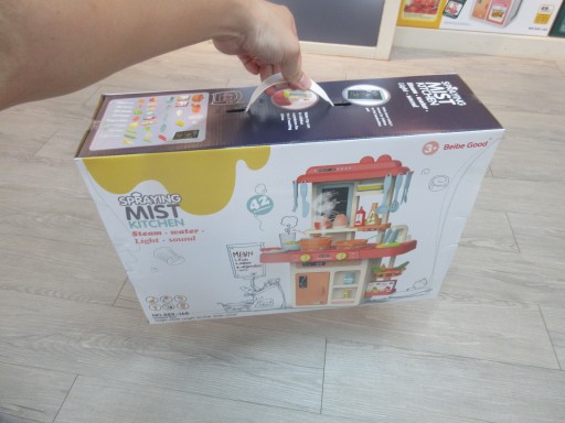 Włączając pierwszy pokrętło, wchodzi w działanie pierwszy palnik, a z niego wydobywa się para naśladująca parującą wodę. Całości towarzyszy dźwięk gotującej się wody (para jest bezpieczna, nie jest gorąca).