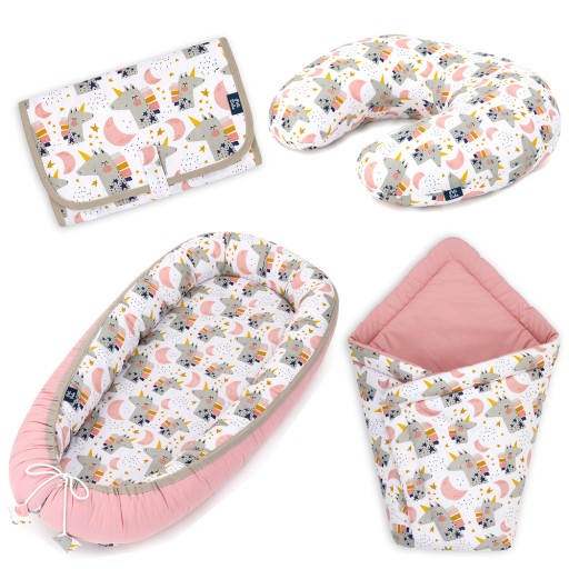 Zestaw 4w1: Kokon + Rożek + Mata + Poduszka Rogal - Jednorożce