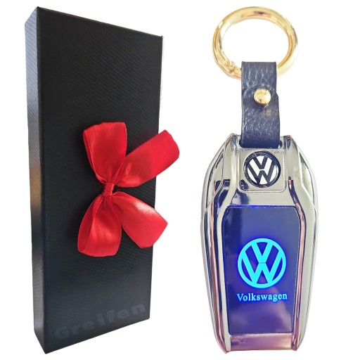 VW ZAPALNICZKA ŻAROWA ELEGANCKI BRELOK DO KLUCZY LOGO LED ETUI KOKARDKA