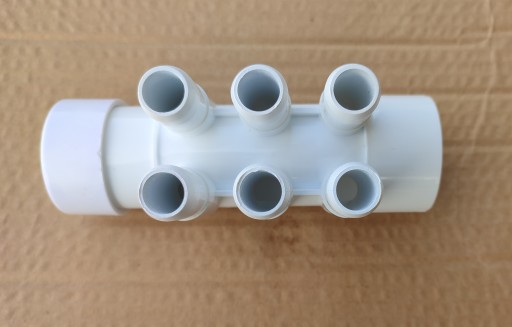 Rozdzielacze można swobodnie łączyć ze sobą, jeden wchodzi w drugi, w razie konieczności rozdzielenia powietrza z dmuchawy na 12 - 18 dysz potrzebne są 2 rozdzielacze, które klei się klejem do PVC