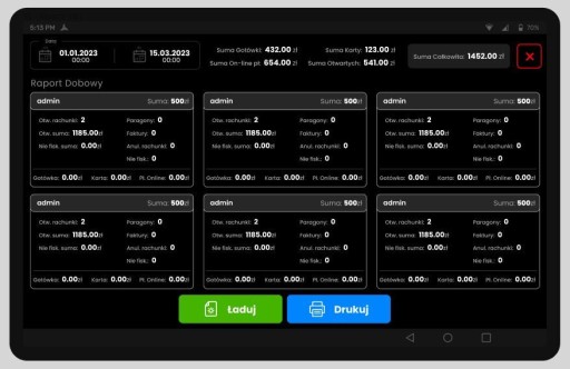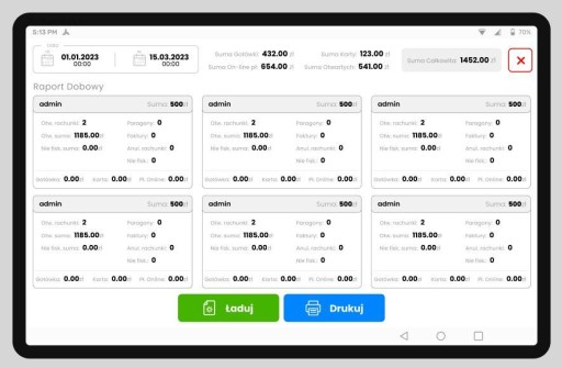 - kontrola pracowników – każdy loguje się indywidualnym PIN-em