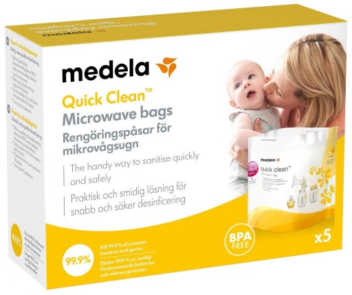 Torebki Medela do dezynfekcji w kuchence mikrofalowej to prosty sposób na szybką i wygodną dezynfekcję akcesoriów do odciągania pokarmu i karmienia piersią. Gdy chodzi o dezynfekcję wyposażenia do karmienia piersią i akcesoriów dla karmiących mam, liczy się pewność.