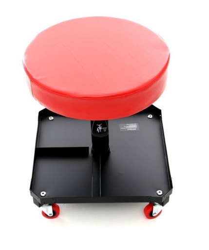Dla poprawy komfortu użytkowania całe narzędzie jest obrotowe 360°, krzesełko wyposażone jest w półkę na narzędzia, klucze, śruby, których używamy przy pracy. Nie martw się narzędziami leżącymi na ziemi!