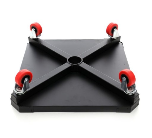 Całość opiera się na czterech solidnych, obrotowych kółkach, pozwalających na przemieszczanie się w garażu.