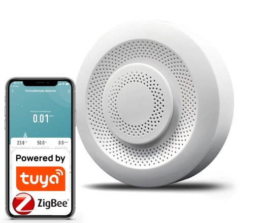 Bezprzewodowy czujnik jakości powietrza: CO2, Formaldehydy, Lotne Związki Organiczne, Temperatura, Wilgotność działający z aplikacją TUYA za pomocą protokołu ZigBee!