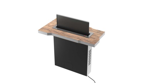 Idealny do podnoszenia ekranów komputerów i mniejszych telewizorów. Idealnie dopasowany do wszelkiego rodzajów sal konferencyjnych – możliwość spięcia szeregowo i jednoczesnego wyjazdu/schowania.