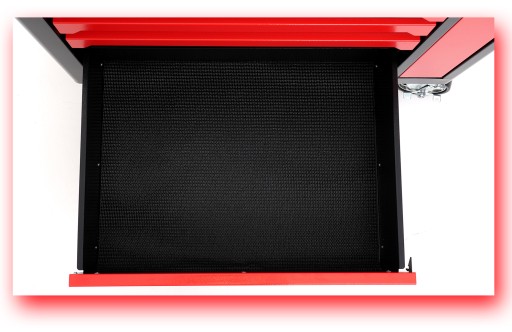 Dodatkowe Udogodnienia dla Wygody: Projekt uwzględnia praktyczne detale, takie jak możliwość montażu imadła czy dodatkowych uchwytów na ręcznik czy chemię. Wyściółka szuflad typu EVA zwiększa trwałość i ochronę narzędzi. Dwa praktyczne schowki, w których można umieścić dodatkowe narzędzia.