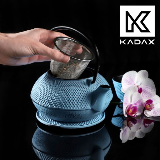 KADAX ZAPARZACZ HERBATY ZIÓŁ IMBRYK ŻELIWNY 850ml DZBANEK CZARKI NIEBIESKI