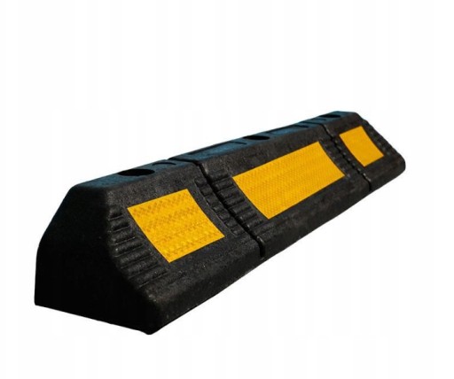 Dla zwiększenia bezpieczeństwa na powierzchni ograniczników naklejono odblaskową, odporną na ścieranie żółtą taśmą polimerową Taśma przyciągają uwagę kierowcy, a także w trudnych warunkach atmosferycznych ułatwia parkowanie.