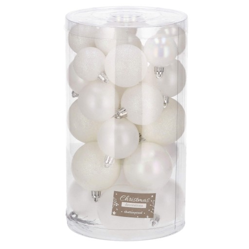 BOMBKI NA CHOINKĘ ZESTAW NIETŁUKĄCE BIAŁE 30szt