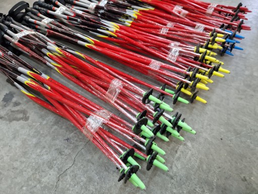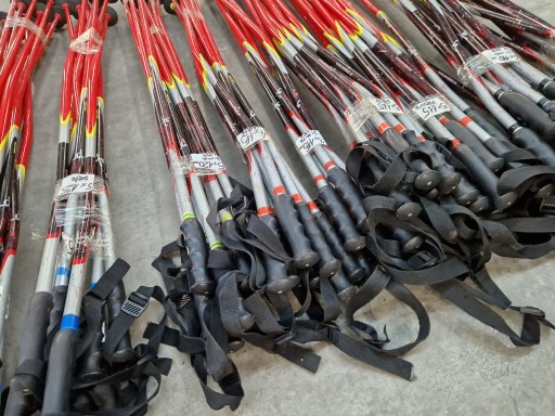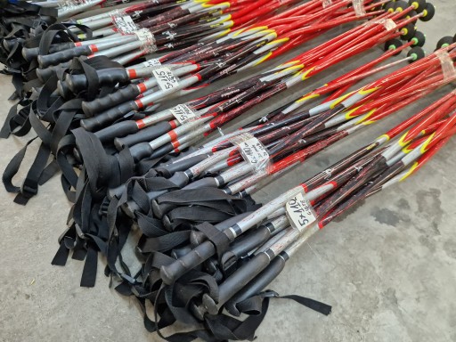 Do sprzedania pakiet kijków seniorskich Rental w pełnej rozmiarówce. Każda długość kijków ma inny dodatek kolorystyczny, a większość kijków to kijki gięte.