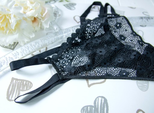 Piękne, kobiece i zmysłowe koronkowe stringi w kolorze czarnym. Polecanie dla kobiet ceniących sobie wygodę i styl.
