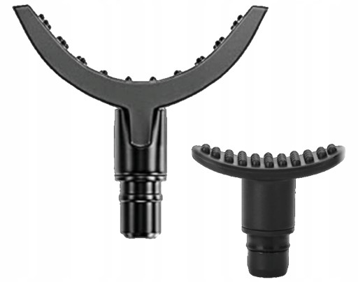 - głowica u-kształtna - do masażu mięśni w okolicach kręgosłupa, głowica została tak zaprojektowana aby masować wyłącznie mięśnie, takich partii jak np. prostowniki grzbietu, łydki czy przedramienia.