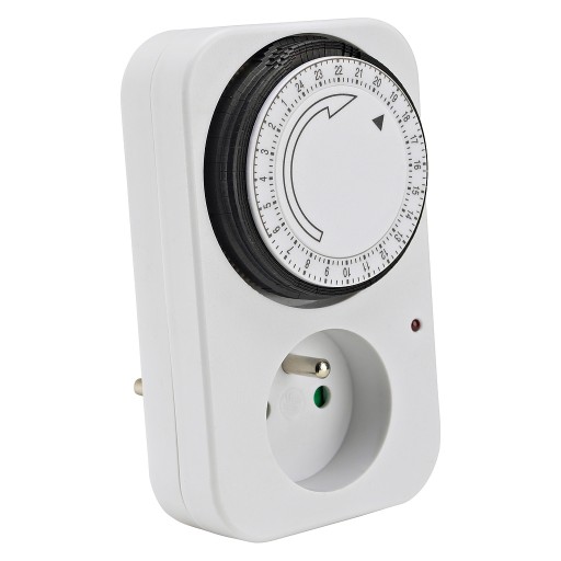 Wyłączniki 2 szt dobowe do sterowania np. oświetleniem wewnętrznym. Wyłącznik można ustawić w przedziałach 15-minutowych na 24 godziny. Przełącznik wyboru trybu stałego lub czasowego. Z przesłoną torów prądowych.
