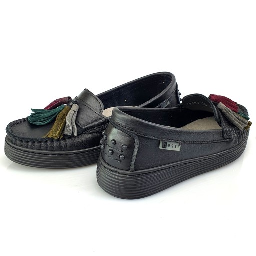 NESSI 18309 черные мокасины с бахромой, размер 41