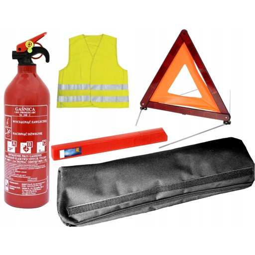 ✅ Zestaw bezpieczeństwa do auta Gaśnica, Trójkąt, Kamizelka GAŚNICA, TRÓJKĄT, KAMIZELKA w futerale z rzepem