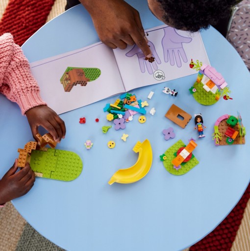 – drukowane, ilustrowane instrukcje pokazują cel każdego etapu budowania, a aplikacja LEGO® Builder oferuje cyfrowe narzędzia do powiększania i obracania, dzięki którym dzieci mogą wizualizować swój model podczas budowania