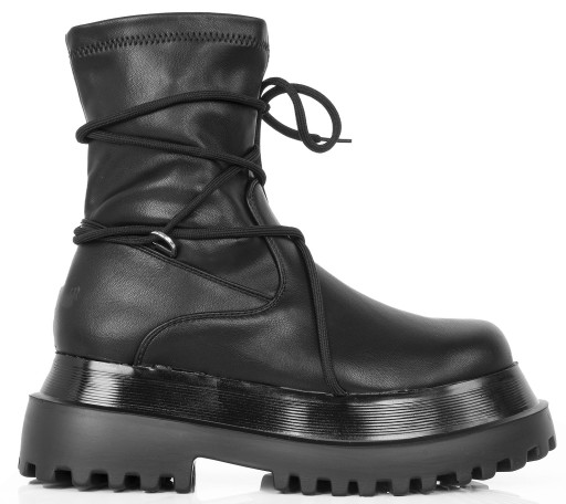 7754 CZARNE BOTKI OCIEPLANE SKÓRZANENA PLATFORMIE 39