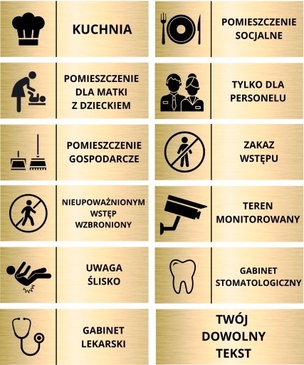 - Informacje na drzwiach toalet, kuchni, magazynów itp.
