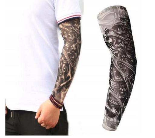 Tatuaż wielokrotnego użytku w formie nakładanego na rękę rękawa.