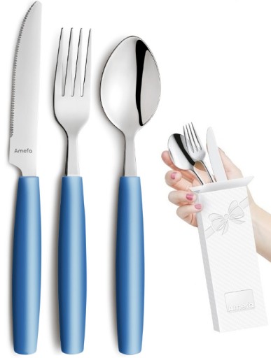 Sztućce Amefa 2515 Pixel Blue Lagoon,komplet w pudełku upominkowym dla dzieci.