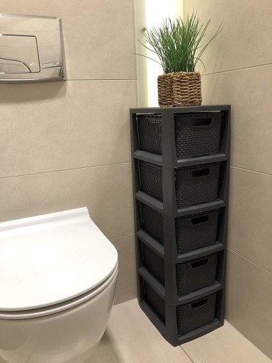 ✅ BRANQ - Regał łazienkowy - Rattan - 5x kosze - komoda - antracytowy
