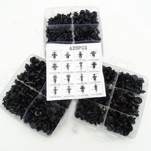 Kołki samochodowe 620 sztuk wraz z pudełkiem.
