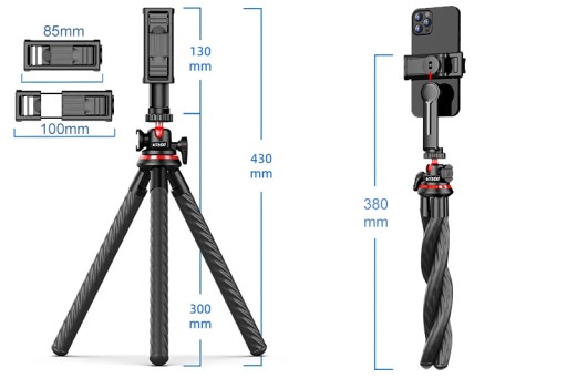 - Regulowana głowica 220° pozwoli Ci na ustawienie telefonu w pionie, poziomie lub pod dowolonym kątem aby uzyskać pożądany kadr.