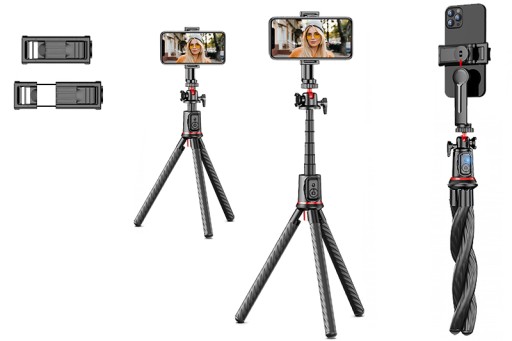 - Regulowana głowica pozwoli Ci na ustawienie telefonu w pionie, poziomie lub pod dowolonym kątem aby uzyskać pożądany kadr.