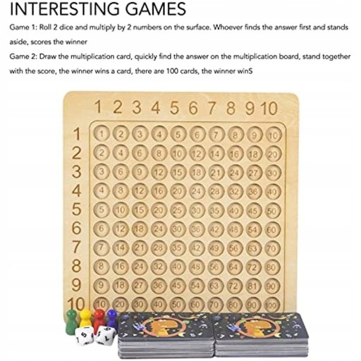 - W zestawie 1 x tabliczka podstawy mnożenia, 1 x wymienna tabliczka dodawania wykonana z papieru, 2x kostki do gry, 4 figurki, 56 kart z zadaniami do mnożenia, 56 kart z zadaniami do dodawania