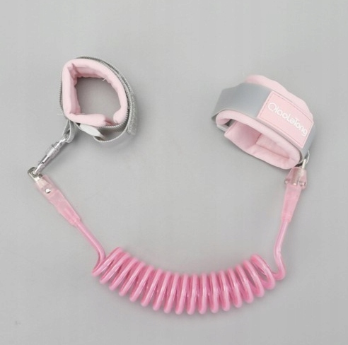 ② Dzieci noszą uprząż przymocowaną łącznikiem na nadgarstek prowadzonym przez osobę dorosłą, której ręka nosi opaskę.