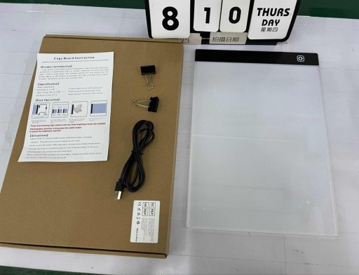 - Podkładka świetlna A4 wykorzystuje kabel USB do podłączenia do źródła zasilania