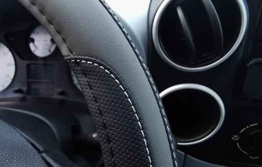 Pokrowiec na kierownicę wykonany z wysokiej jakości ekoskóry perforowanej.