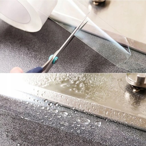 Taśma jest przezroczysta, elastyczna więc w łatwy sposób dopasujesz ją do miejsca, które chcesz ochronić przed zbieraniem się wody czy tworzeniem się pleśni.