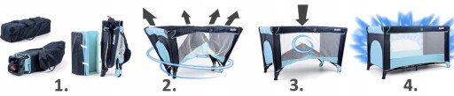 Nowoczesne łóżeczko turystyczne, które pełni też funkcję kojca. Konstrukcja posiada system szybkiego składania i rozkładania. Łóżeczko jest łatwe w transporcie dzięki wygodnej torbie. Ma przewiewne boki z siateczki.