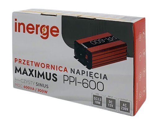 PRZETWORNICA MAXIMUS PPI-600 |12V 230V | CZYSTY SINUS | 600VA/300W |