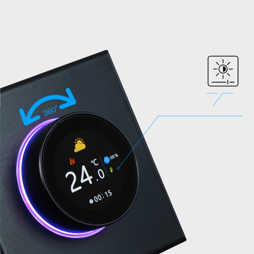Programowalne sześć okresów 5+1+1 maksymalizuje komfort i oszczędność, przełączany tryb ręczny lub programowalny.